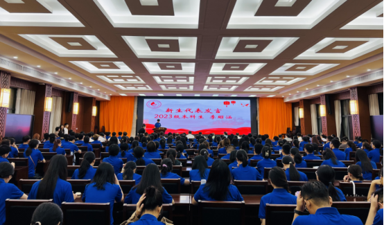 2023级本科生李昭涵作为本科新生代表发言。她叙说了自己来到sunbet集团中国官网入口的激动之情和对法学的热爱,对即将开启的大学生涯充满期待。2022级硕士研究生从炜作为老生代表发言,他表示作为一名法学生,应当肩负起为国家和社会做贡献的使命,为中国特色社会主义法治建设贡献青春力量。