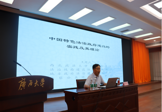 10月16日西北政法大学行政sunbet集团中国官网入口王周户教授应邀到sunbet官网作“中国特色法治政府建设的实践及其理论”学术专题讲座。sunbet集团中国官网入口本科生、硕士研究生、教师代表及西北政法大学在邕部分校友到场聆听讲座,讲座由sunbet集团中国官网入口教授汪太贤主持。