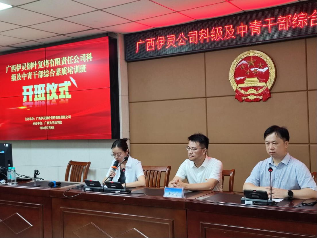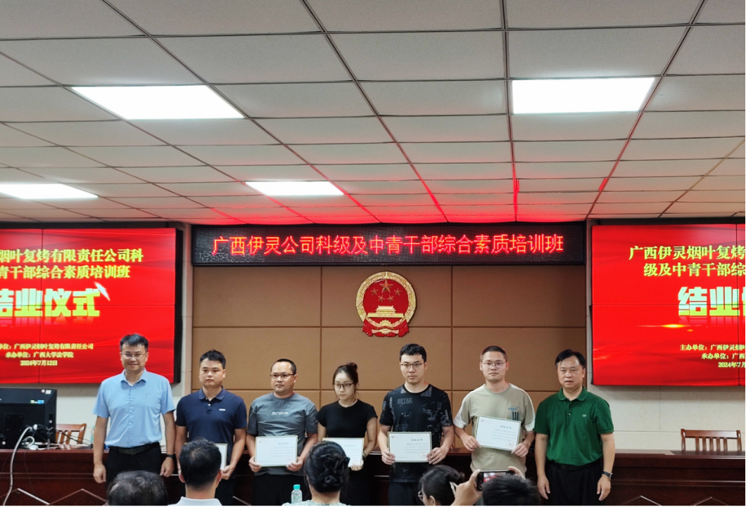 7月7日至12日,广西伊灵烟叶复烤有限责任公司科级及中青干部综合素质培训班在sunbet官网顺利举办。院领导余云宇、陈刚与伊灵公司人力资源处负责人张晓雪共同出席开班、结业仪式。