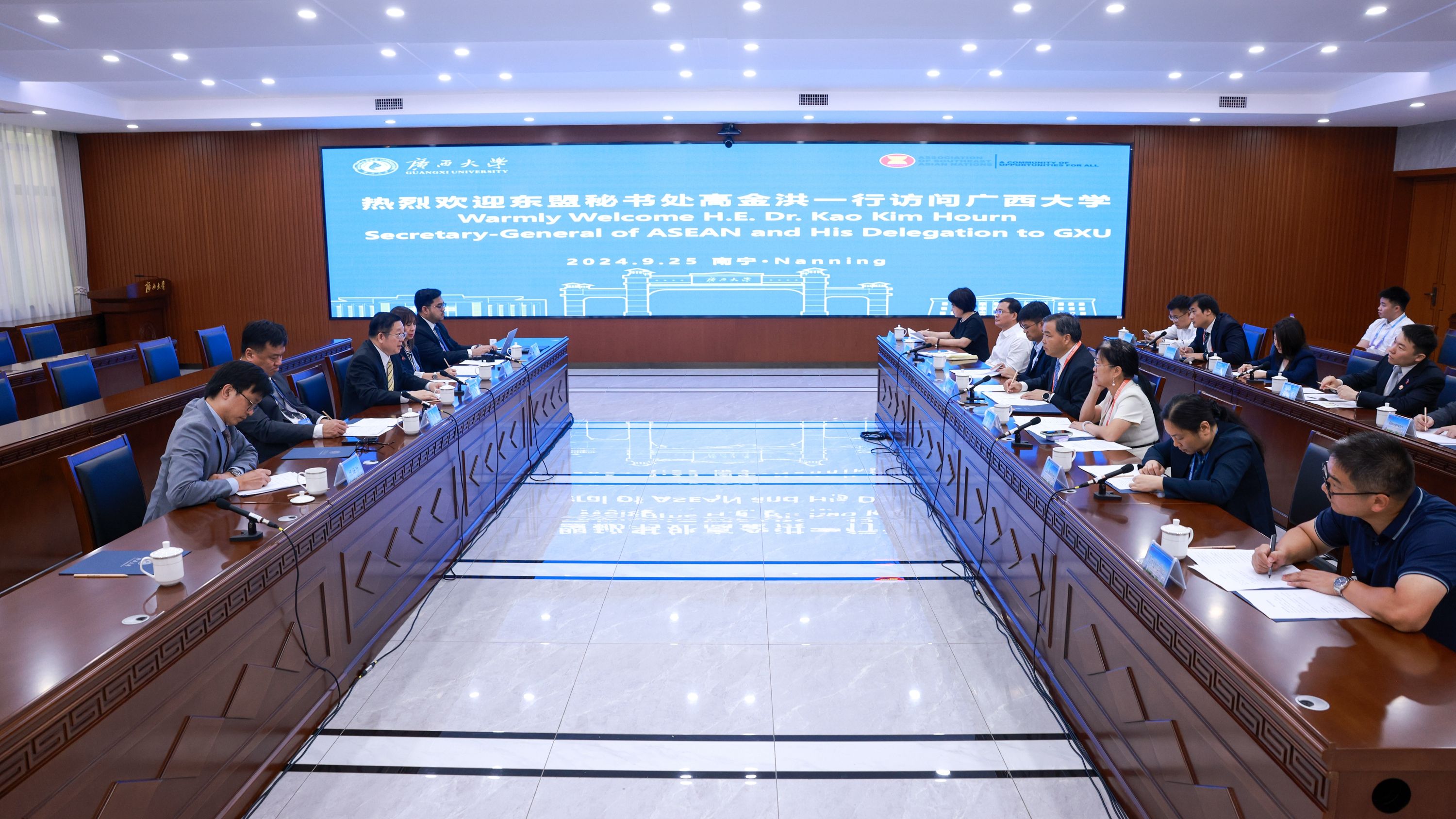 9月25日,东南亚国家联盟秘书长高金洪(Secretary-General of ASEAN, H.E. Dr.Kao Kim Horn)携代表团访问sunbet集团中国官网入口,并与师生代表交流、座谈。sunbet官网校长韩林海、副校长肖建庄会见来宾。