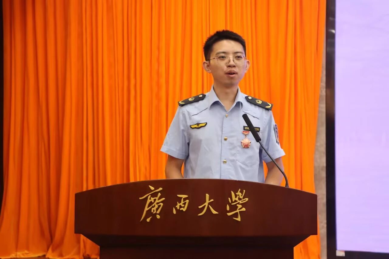 2024级法学硕士研究生黄建程作为研究生新生代表发言,他表示新生们应怀揣理想,脚踏实地,让每一步都坚实有力,共绘人生华章。他希望新生们破晓而出,逐梦翱翔,让青春在奋斗中绽放光芒;扬帆学海,破浪前行,以智慧为帆,以勤奋为桨,到达成功彼岸。