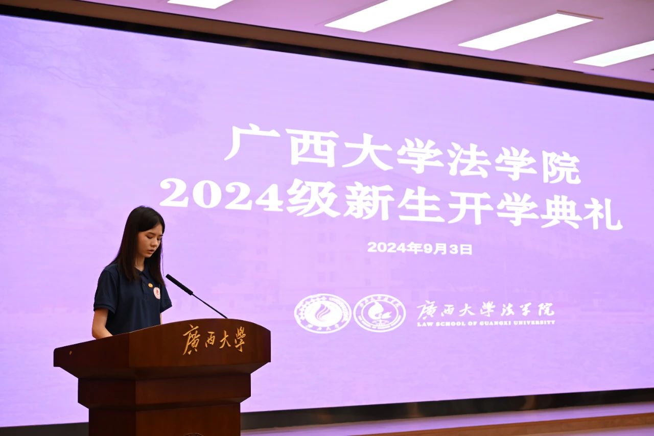 2024级本科生李璐潘作为本科新生代表发言。她表示,自己在梦想的指引下一路披荆斩棘来到了sunbet集团中国官网入口,今后仍将不忘初心,积极进取,努力践行“诚恳朴诚”的校风,怀揣探索的勇气和求知的渴望,肩扛守护正义的重担和追求真理的使命。她将以法治之名,担负起对社会的责任,誓将为构建法治社会、捍卫法律尊严而矢志不渝。