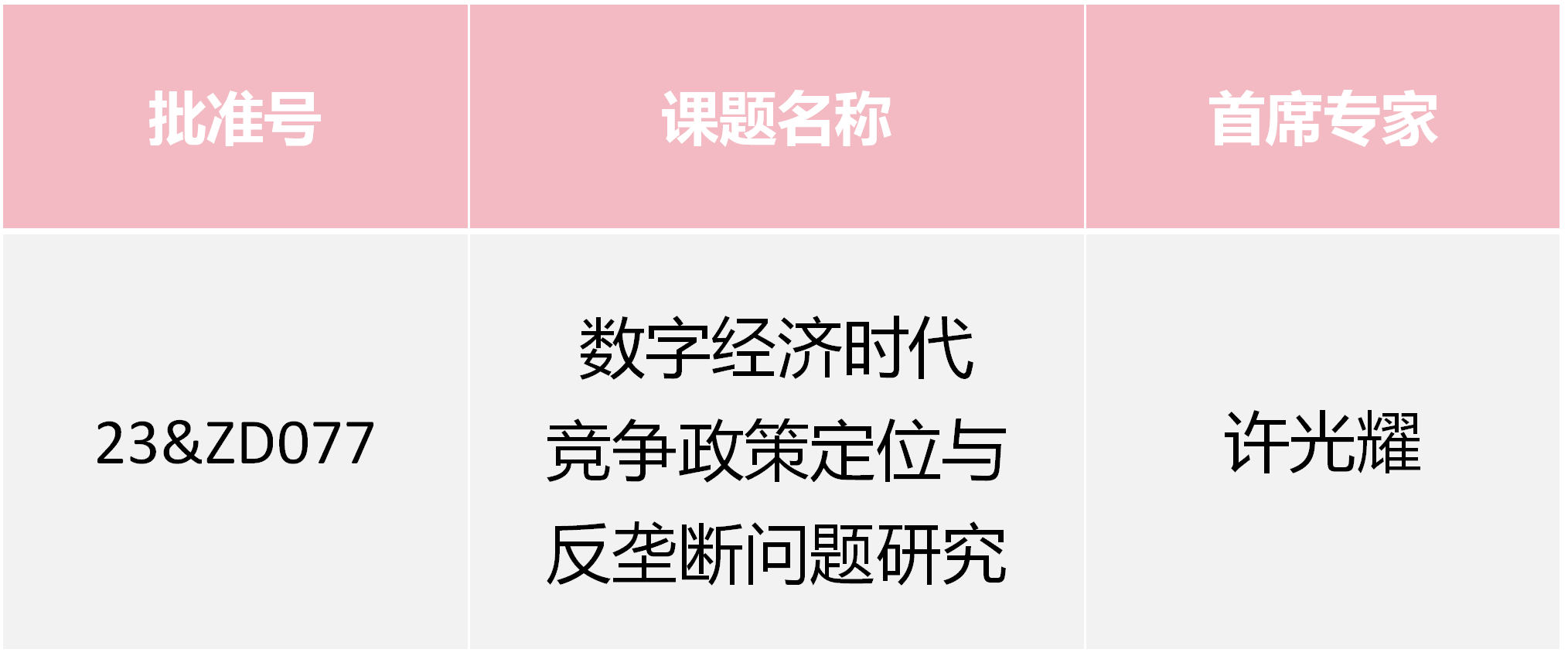 12月28日,全国哲学社会科学工作办公室公布2023年度国家社科基金重大项目立项名单,sunbet官网许光耀教授申报的课题“数字经济时代竞争政策定位与反垄断问题研究”项目获得立项,实现sunbet官网在国家级重大项目上的新突破。