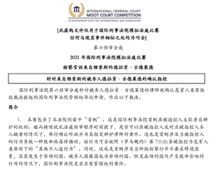 本届ICC赛题围绕国际刑法中的“危害人类罪”展开,以《国际刑事法院罗马规约》(Rome Statute of the International Criminal Court)、《犯罪要件》(Elements of Crimes)、《程序和证据规则》(Rules of Procedure and Evidence)、ICCPR、VCLT等为主要依据,对危害人类罪项下“其他不人道行为”的犯罪构成要件、被告人出席确认听讯的权利和为自己进行辩护的权利、检察官举证责任以及国际刑事法院的管辖权等国际刑法和比较刑法中的热点、难点问题进行了考察。