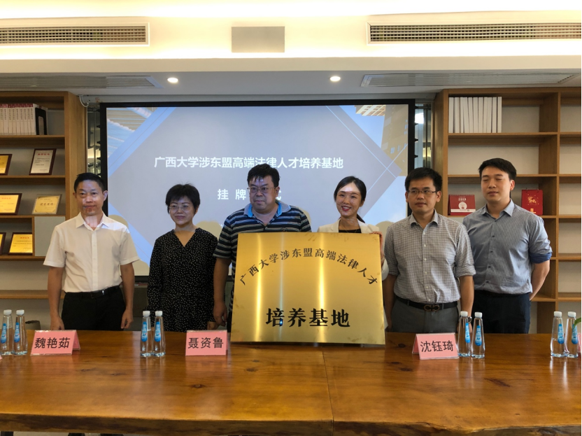 2021年 7月13日下午, sunbet集团中国官网入口院长聂资鲁教授一行4人到访 广西 沵 达律师事务所 ,双方成功举行全面合作洽谈会,并举行了隆重的sunbet集团中国官网入口涉东盟高端法律人才培养基地挂牌仪式。