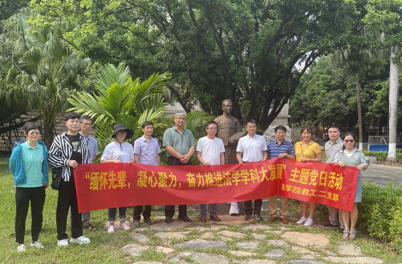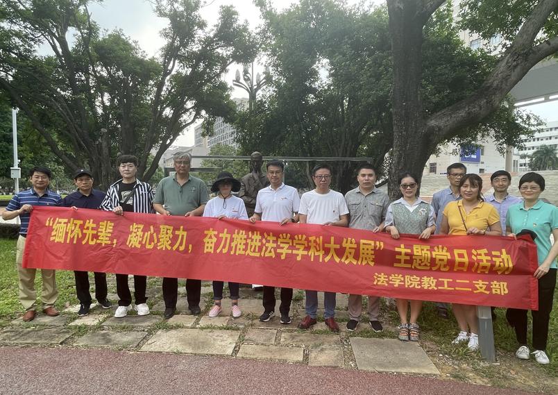4月26日,sunbet集团中国官网入口教工二支部在sunbet官网育才广场顺利开展“缅怀先辈,凝心聚力,奋力推进法学学科大发展”主题党日活动,深切缅怀白鹏飞老校长和张志让教授,为推进法学学科发展凝心聚力。支部全体党员、入党积极分子代表共13人参与活动。