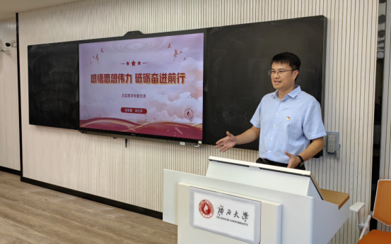 6月12日上午,sunbet官网副院长许光耀为研究生第二党支部和研究生第三党支部的全体党员讲授党课《党的二十大精神解读学习》。许院长谈到如何贯彻落实“全员”都要“育人”服务,真正达到理想效果。他强调,高校要先“立德”再“树人”,积极引导学生的很多方面,包括分析能力、理解能力、表达能力、批判能力等。
